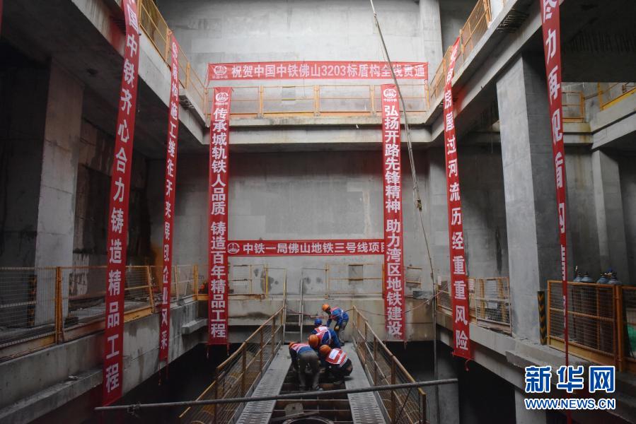 12月24日,施工人员在佛山地铁3号线新松站进行盾构机钢套筒拆解作业。新华社记者 吕诚成 摄
