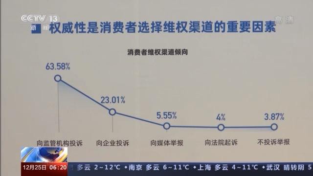 在维权方面,超过六成的消费者选择向监管机构投诉,选择向企业投诉的占比是23%。
