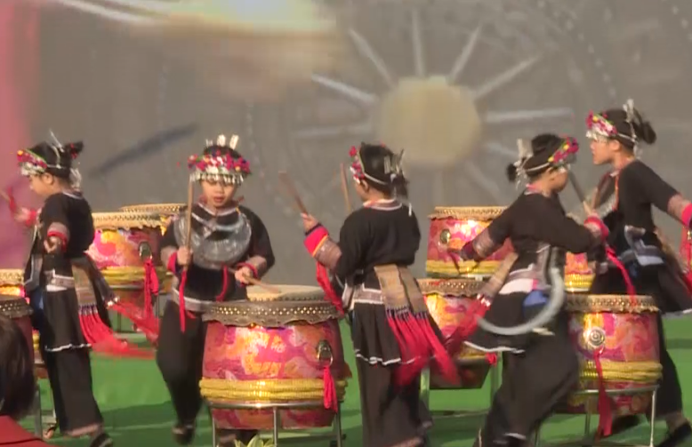 演出在巴马特色民俗皮鼓舞演奏中拉开帷幕。18名来自巴马东山乡中心小学的孩子穿着瑶族盛装,欢快地舞动,表达着对脱贫摘帽的喜悦。东山乡是巴马最偏远、最贫穷的一个乡镇,也是瑶族文化保存得最完整的地方。近来年随着扶贫工作的不断开展,东山乡把教育作为脱贫攻坚的重中之重,这才让孩子们有了宽敞明亮的学校,可以学习知识,传承瑶族文化。