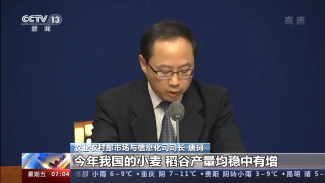 农业农村部市场与信息化司司长 唐珂:今年我国小麦、稻谷产量均稳中有增,库存依然处于历史高位,预计后期口粮总体价格将继续以稳为主。