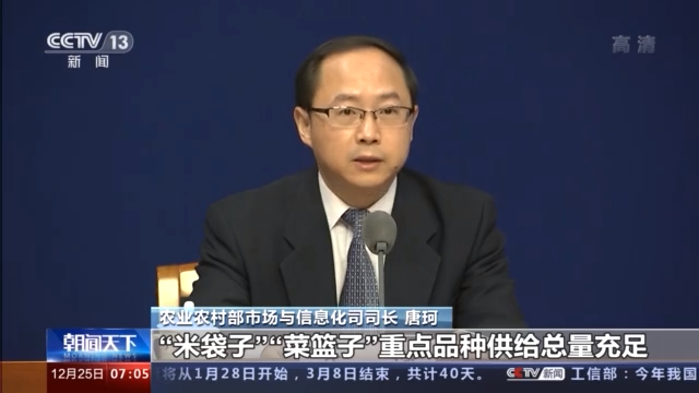 农业农村部市场与信息化司司长 唐珂:明年国内农产品市场有望继续保持稳定,特别是元旦春节期间,“米袋子”“菜篮子”重点品种供给总量充足、品种丰富,城乡居民碗里不会缺粮缺油,也不会缺肉少菜。