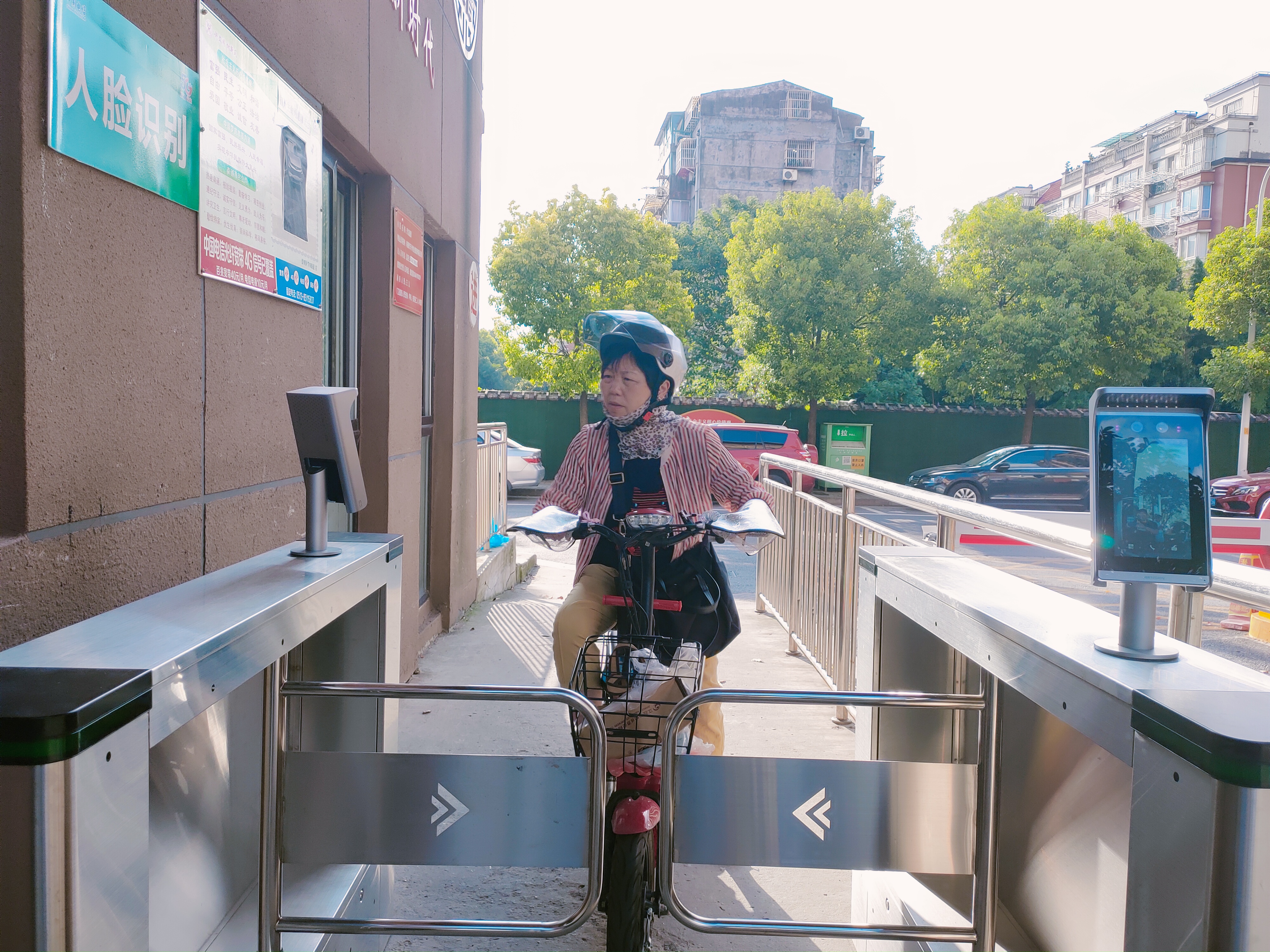 在江苏省南通市崇川区学田街道,小区居民通过人脸识别设备经过小区的出入口 9月1日摄