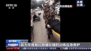 李雪梅: 他应该就是突发情况,因为我是蓬安县阳光救援队的,然后平时也接受过专业的救助训练,所以当时我第一时间疏散人群,然后进行心肺复苏救护。只有一个念头,就是用我的专业知识、专业救护方法把这个老年人救过来。