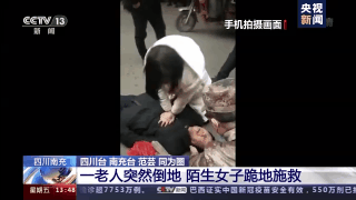 12月23日,在四川南充市蓬安县城北路,一名七旬老人突然晕倒在路边。一位素不相识的女子当街跪在地上,为老人做心肺复苏和人工呼吸,并一直等到救护车的到来。
