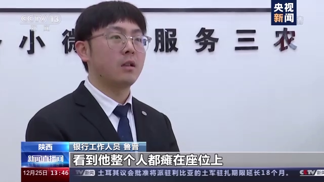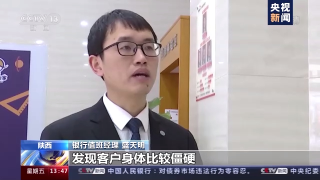 银行工作人员 鲁晋:当时我就站在客户的身后,看到他整个人都瘫在座位上,四肢也开始有一点僵硬,我一开始愣了一下,然后就立刻反应过来,和我们大厅的保安一个扶住他的头一个扶住他的身体。