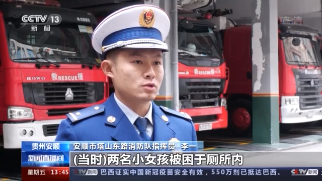 安顺市塔山东路消防队指挥员 李一:当时两名小女孩被困在厕所内,她们虽然看上去比较慌张,但是身体状态还是不错。