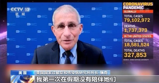 美国国家过敏症和传染病研究所所长 福奇:我当然很难受,这是我女儿出生以来,我第一次在假期没有陪伴她们,我必须要践行我所宣传的东西,那就是在假期期间,尽量不要外出旅行。