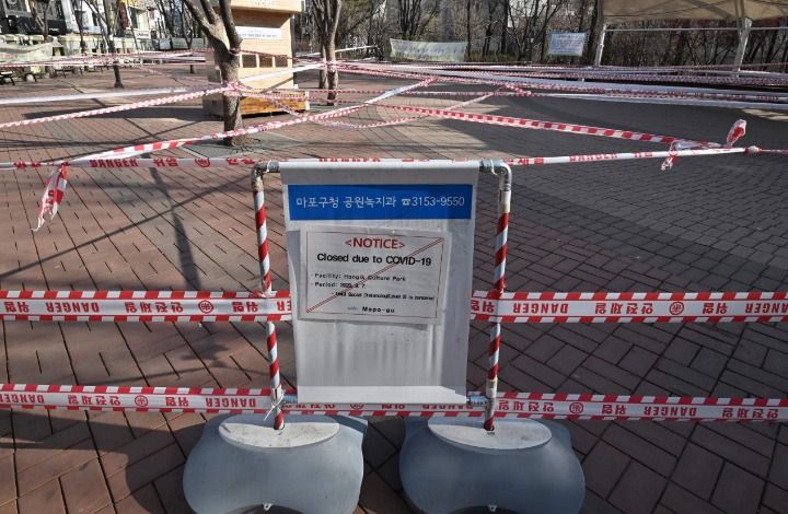 12月24日,在韩国首尔,一座公园因新冠疫情而关闭。新华社/法新