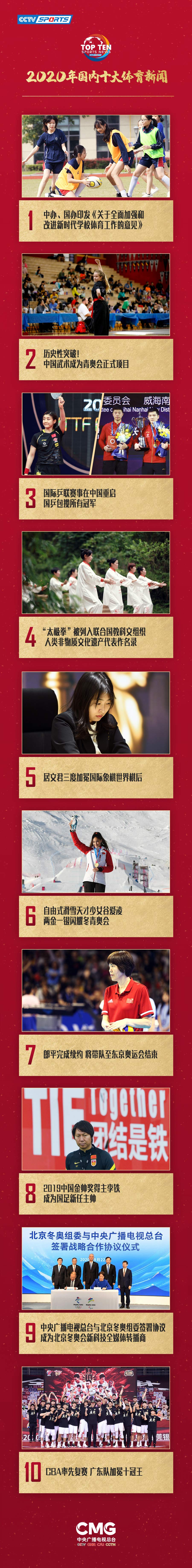 当一页页的日历即将翻完,2020年的脚步声离我们终于越来越远。回望这一年,谷爱凌闪耀洛桑诠释英雄出少年,广东男篮十冠王壮举把传奇展现……他们用顽强努力创下佳绩,传递着人类不屈的抗争信念,鼓舞疫情下的人们继续奋发向前!不平凡的2020年,必将成全人类脑海中共同的记忆点,不平凡的体坛,必将成为记忆中最难忘的闪光点!中央广播电视总台重磅发布2020年国内十大体育新闻!戳图↓↓↓