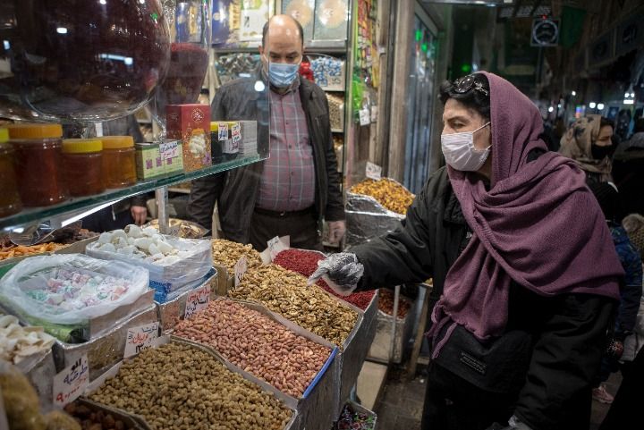 12月20日,顾客在伊朗首都德黑兰的市场上采购。新华社发(艾哈迈德·哈拉比萨斯摄)