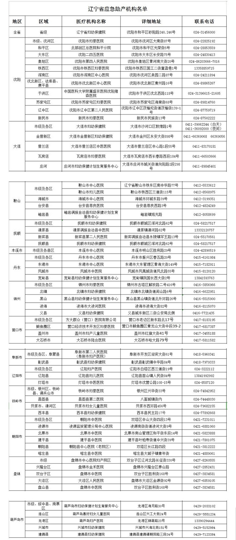12月24日,辽宁省卫生健康委发布《辽宁省各级应急助产机构名单公告》。按照辽宁省卫生健康委转发《国家卫生健康委办公厅关于做好妇幼保健机构秋冬季新冠肺炎疫情防控工作的通知》,结合辽宁省疫情防控工作实际,经辽宁各市卫生健康委上报确认,确定辽宁省65家医疗机构作为应急助产机构,用于疫情防控期间应急承接普通孕产妇产检和住院分娩。现将机构名单予以公布: