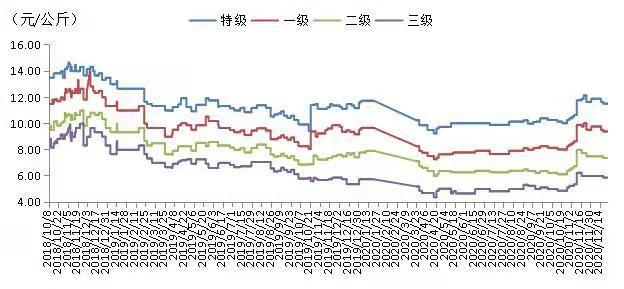 新疆产区各品级灰枣现货价格走势图