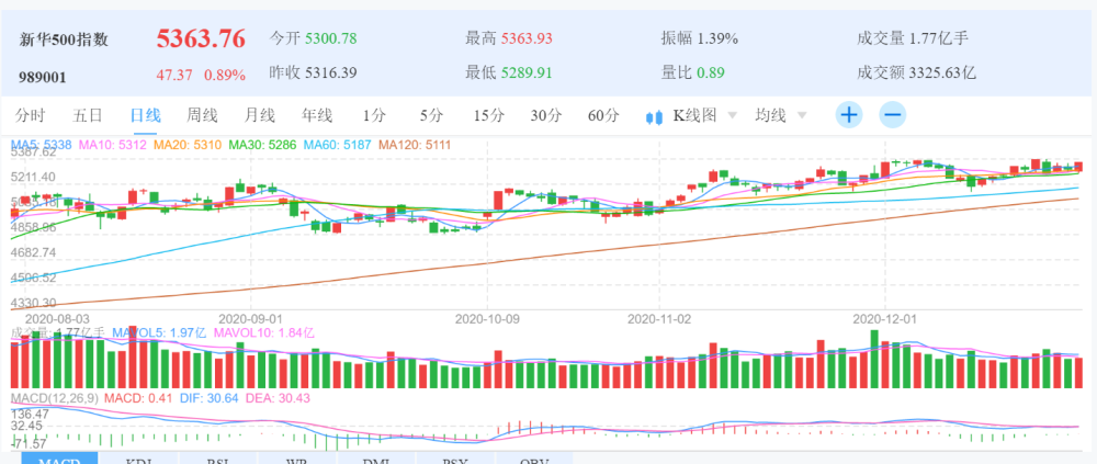 图为新华500指数(989001)日K线图
