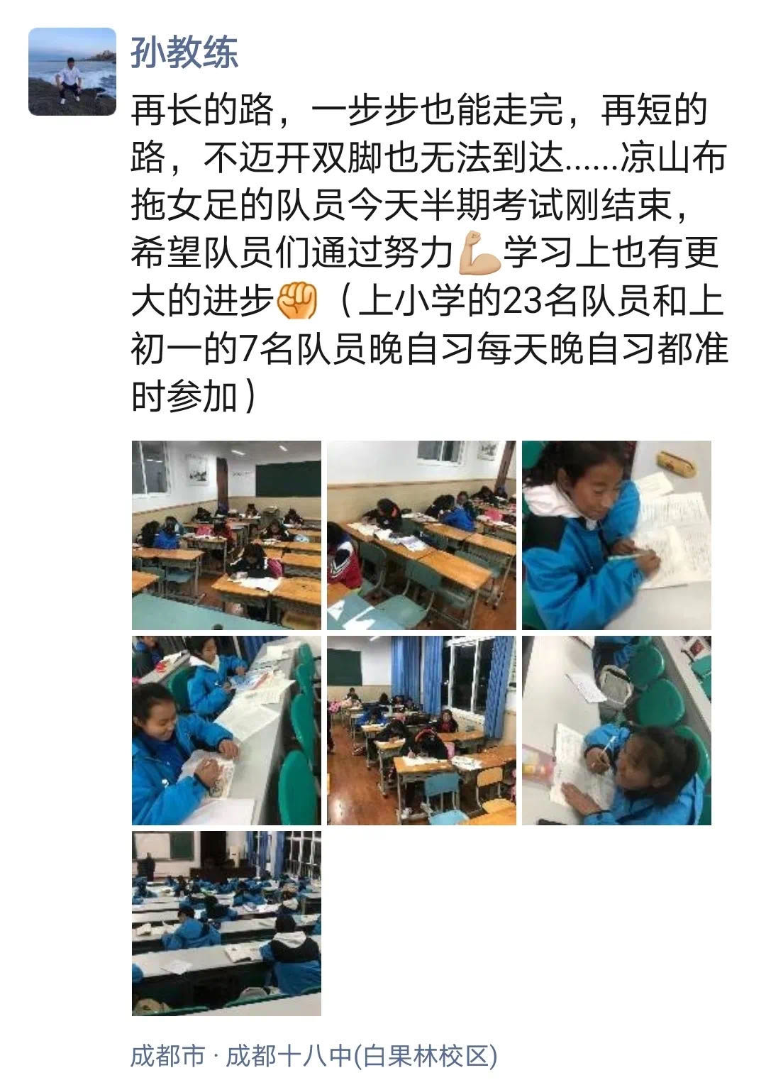 而这位让队员们都感到害怕的孙教练的朋友圈里,90%以上的篇幅都留给了这19个布拖的女孩子,细致地记录着她们每一天的成长和进步。