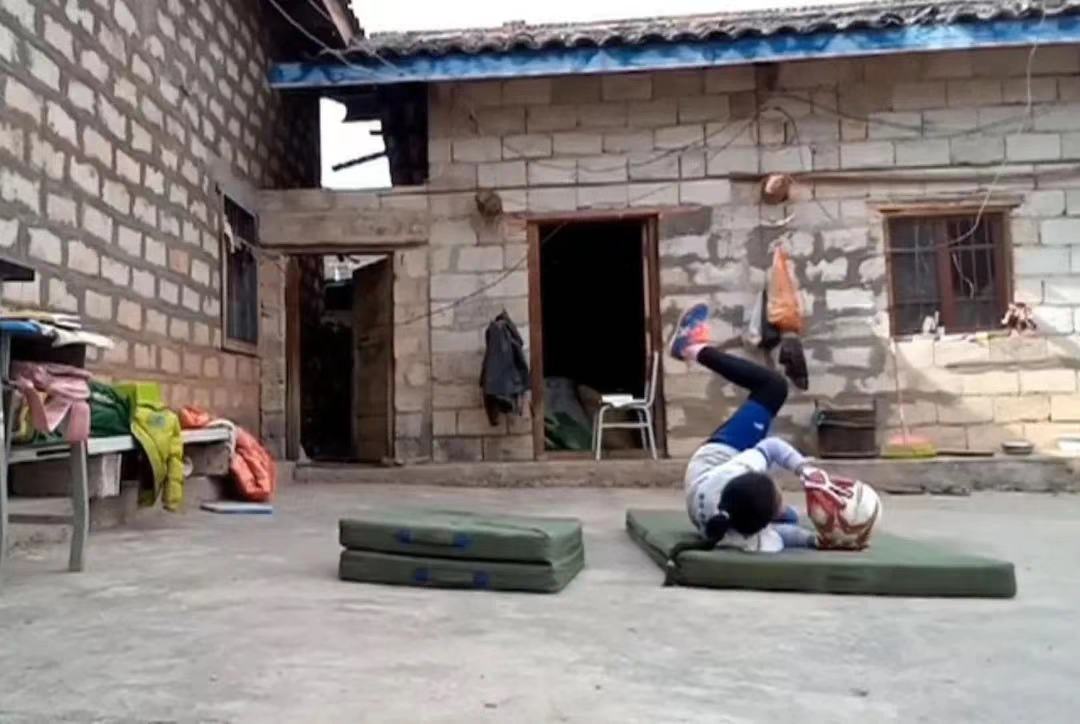 远程训练的时候,孙教练每天还会给队员们布置训练计划,要求孩子们每天发练习视频进行反馈。这些反馈视频里,女孩们把砖头、木块、鞋子当标志筒,把山坡当训练场,反复地练习着。