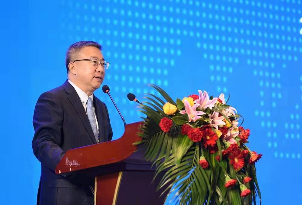 图为中国对外承包工程商会会长房秋晨作主旨发言