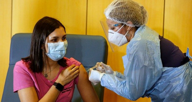 同一天智利疫情较为严重的比奥比奥大区、麦哲伦大区和阿劳卡尼亚大区医护人员收到新冠疫苗,并开始进行接种。(总台记者 刘欣)