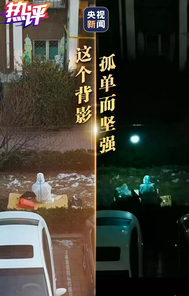在疫情形势较为严峻的大连,12月24日一组背影照刷屏:在被划为中风险地区的某小区,身穿防护服的志愿者坐在封闭管理小区的楼下,从白天到黑夜,一直在坚守。这样的场景被居民拍下,感动了众人。