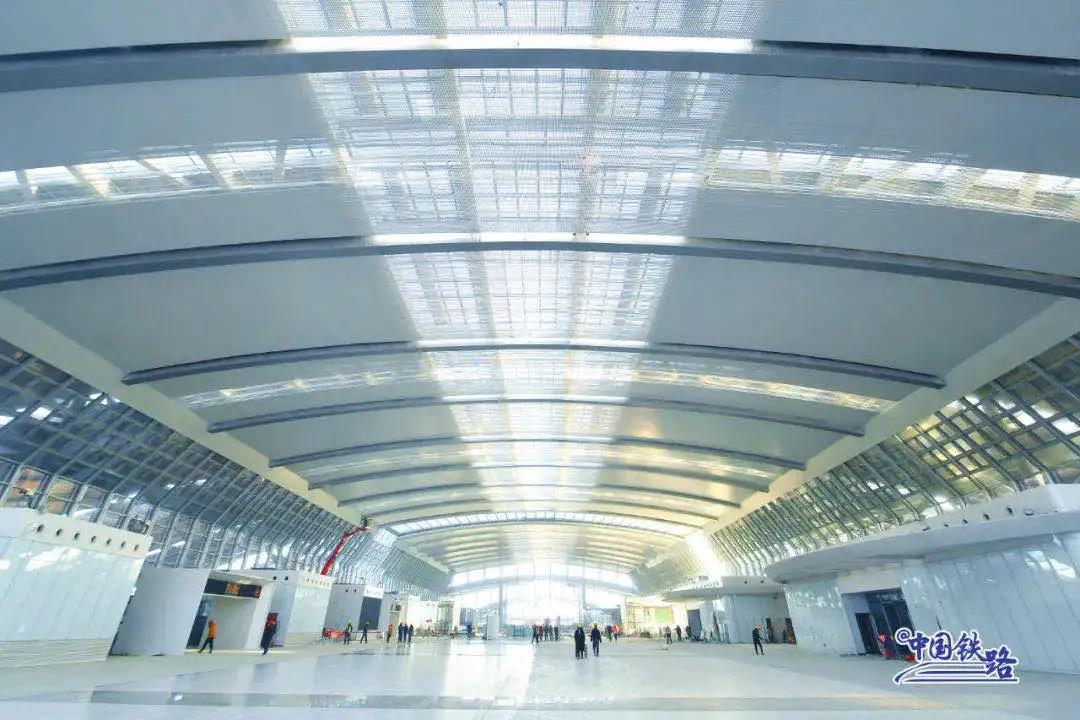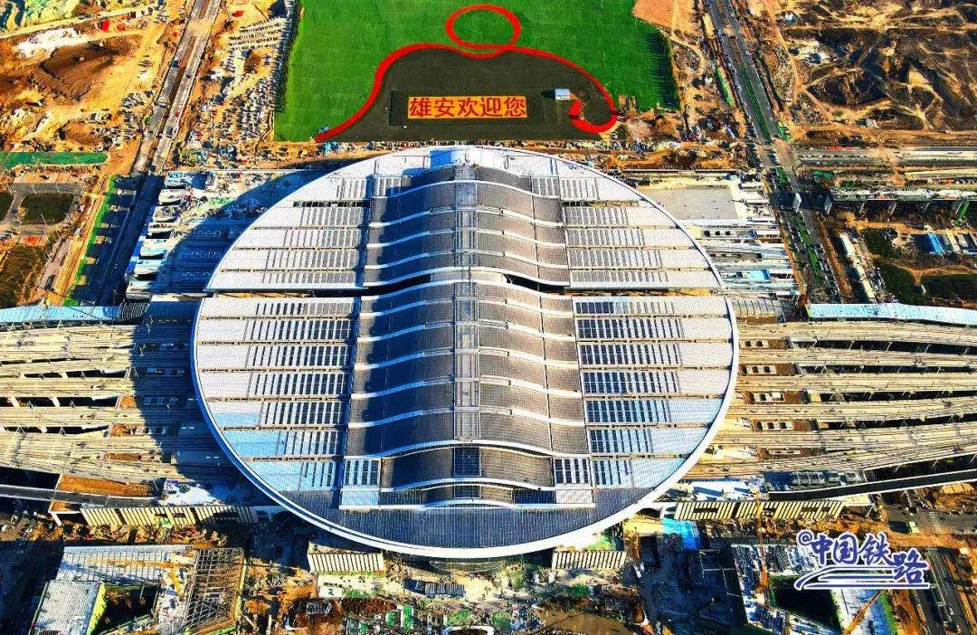 同步投入运营的雄安站站场规模13台23线,总建筑面积47.52万平方米,采用站城一体化设计,有效融入城市肌体,做到枢纽区域与城市规划、产业开发有机融合;站房外观采用“青莲滴露”设计主题,呈水滴状椭圆造型,椭圆形屋盖轮廓如清泉源头,似一瓣青莲上的露珠;采用立体候车布局,能够实现旅客“进出分层、到发分离”,保证旅客进出畅通;在车场之间创新采用15米宽的“光谷”,提升了采光通风效果。未来,雄安站将成为京港(台)高速铁路、京雄城际铁路、天津至雄安新区城际铁路、雄安新区至忻州高速铁路的交会枢纽。