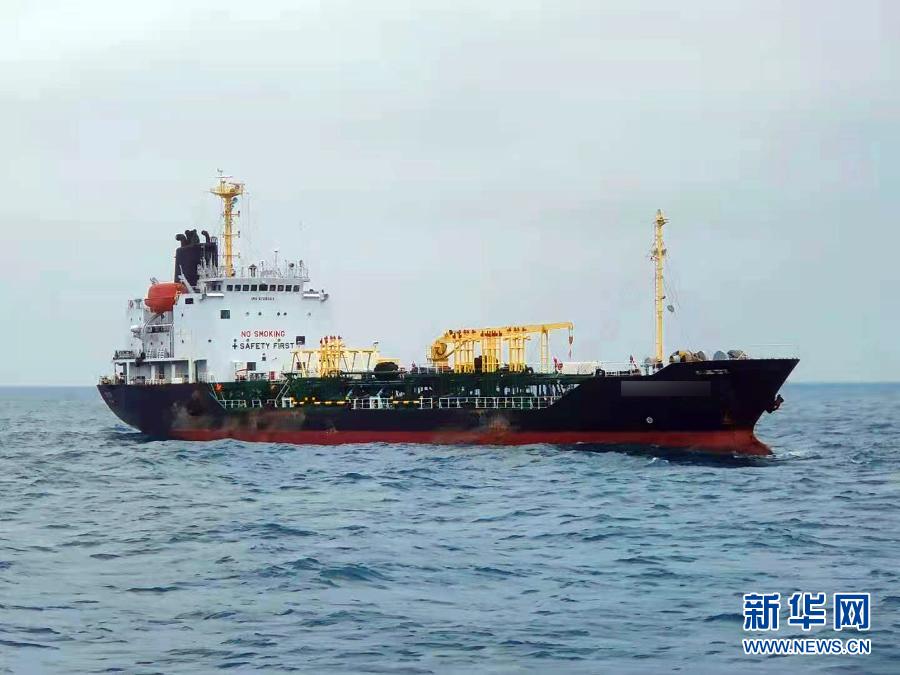 被海警执法员发现的走私集团的供油母船(12月13日摄)。新华社发(敖玉洪 摄)