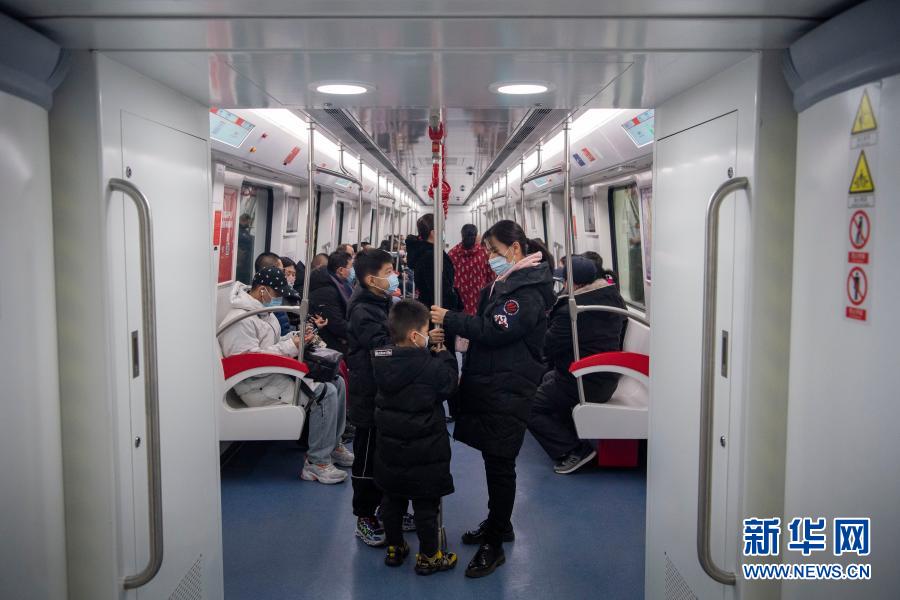 12月26日,市民在太原市轨道交通2号线上。