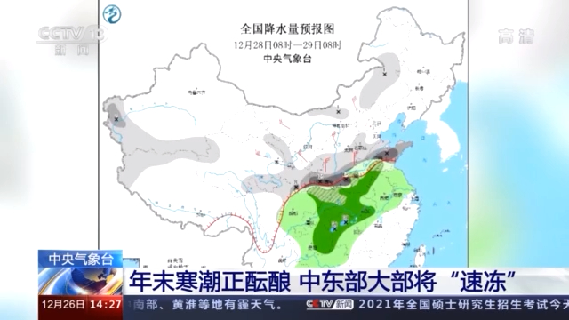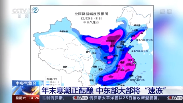 岁末将至,一股强冷空气正在位于我国北部的西伯利亚加紧酝酿,中央气象台预计,12月28日至31日,这股冷空气将给我国中东部地区带来一次寒潮天气过程,此次天气过程具有影响范围广、降温剧烈、气温低、大风持续时间长等特点,中东部大部地区将出现入冬以来最寒冷天气。