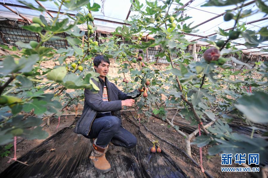 12月26日,在承德市双滦区偏桥子镇一无花果采摘园,果农在大棚内对无花果进行田间管理。新华社发(王立群 摄)