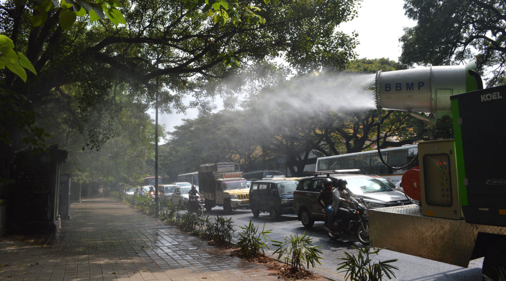 12月20日,消杀车辆在印度班加罗尔街头作业。新华社发