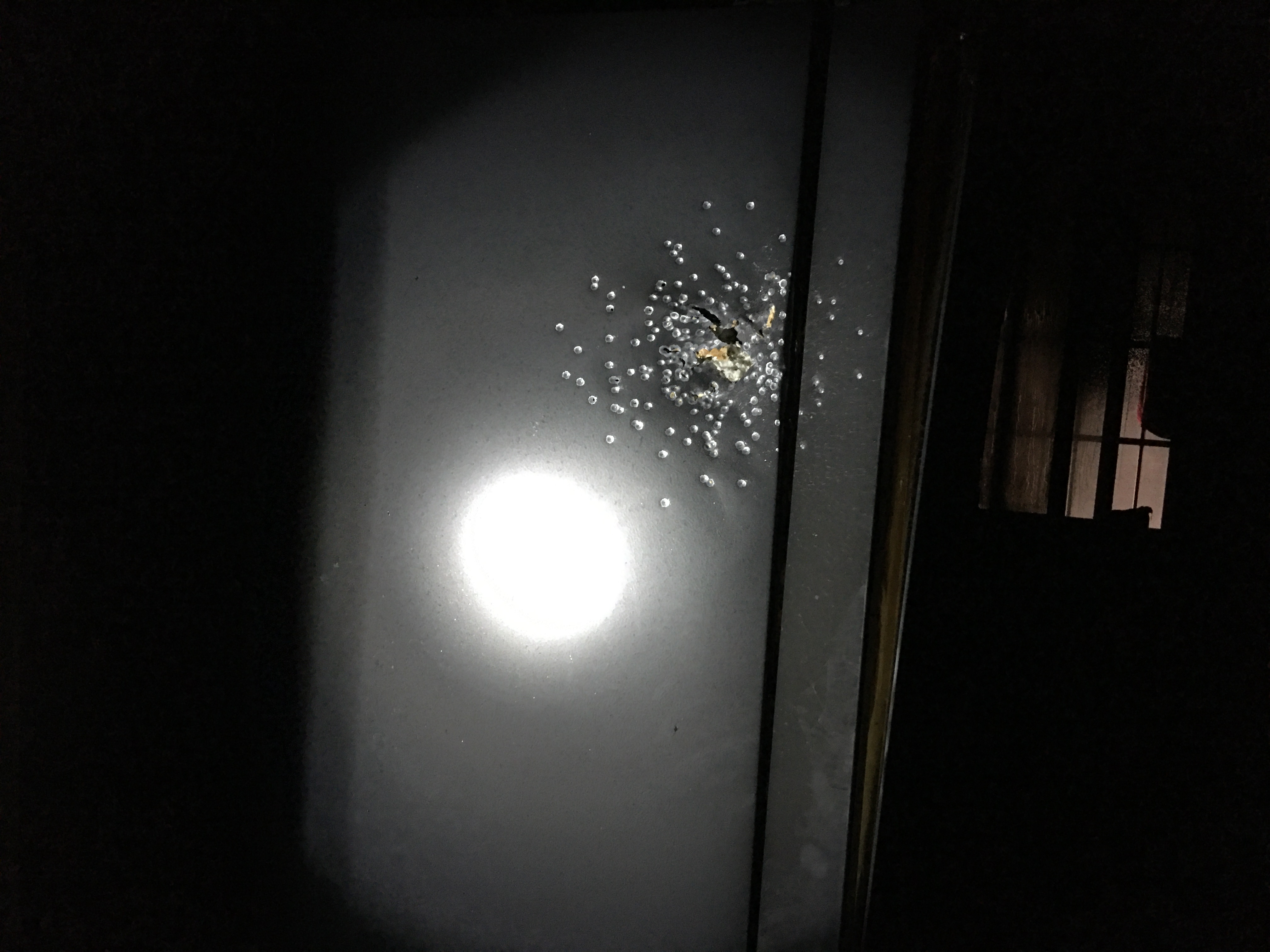 ↑这是现场留下的弹孔(12月25日摄)。新华社记者 孙一 摄