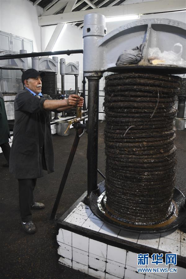 12月26日,在突尼斯迈努拜省的一个橄榄油作坊,一名男子用传统方法生产橄榄油。 突尼斯是全球主要的橄榄油生产国和出口国之一。 新华社发(阿代尔 摄)