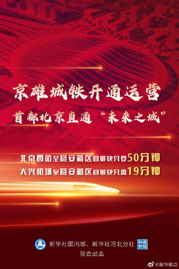 【#权威快报#|#京雄城铁开通运营#,北京到雄安只需要50分钟】走,坐上高铁去雄安,打卡“未来之城”!我国智能高铁新标杆京雄城际铁路27日全线开通运营。北京西站至雄安新区间最快旅行时间50分钟,大兴机场至雄安新区间最快只需19分钟。2021年1月20日,全国铁路运行图调整时,京雄城铁将按照日常线、高峰线安排列车开行,每日开行动车组列车最高达17对。