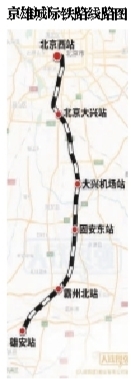 京雄城际铁路自北京西站引出,经过既有京九铁路至李营站,接入新建高速铁路线路,向南途经北京大兴区、河北省廊坊市、霸州市至雄安新区,线路全长91公里,最高设计时速350公里。京雄城际铁路大兴机场至雄安新区段开通运营后,铁路部门将安排开行动车组列车16对,初期最高运营时速300公里。2021年1月20日全国铁路运行图调整时,将按照日常线、高峰线安排列车开行,每日开行动车组列车最高达17对。