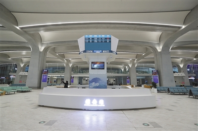 12月24日,雄安站候车大厅的服务台。 记者 王贵彬 摄