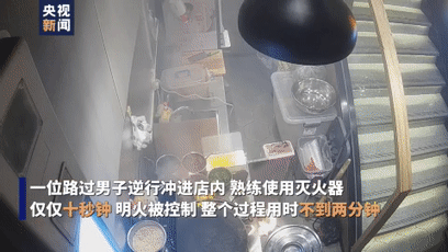 男子逆行冲进店内进店到灭火用时不到2分钟