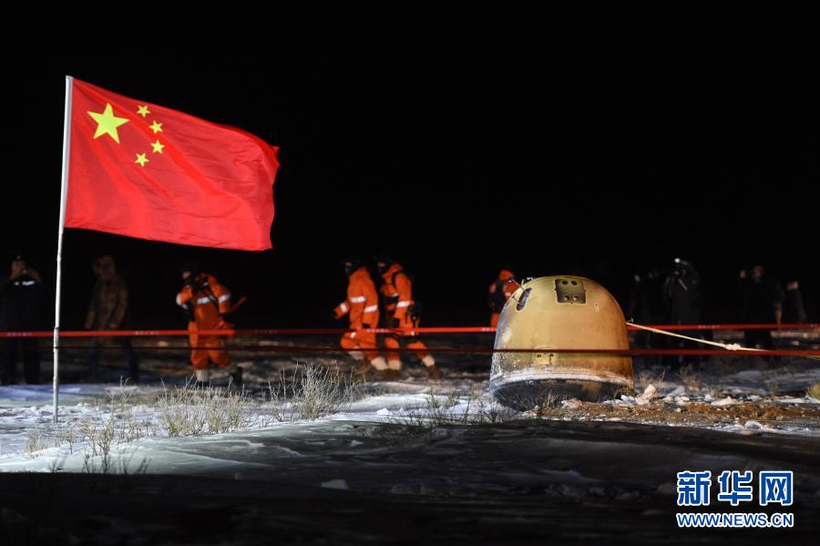 12月17日凌晨,嫦娥五号返回器携带月球样品,在内蒙古四子王旗预定区域安全着陆。