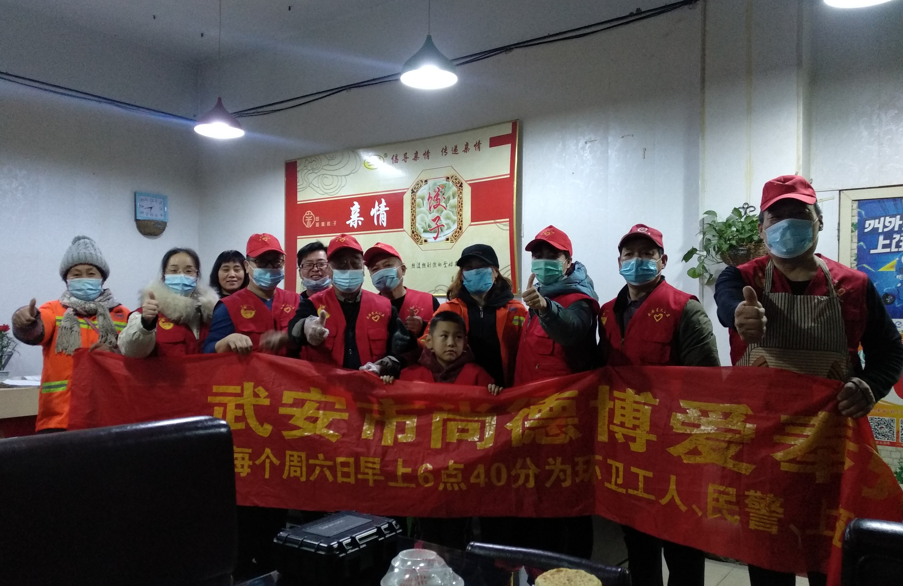 熬粥、分粥、送粥,每到周末,这样的场景已经成为武安尚德博爱志愿服务队的常态。截至2020年12月20日,服务队已组织免费奉粥活动460次、送出38673碗,累计志愿者参加人次5670次……志愿者在周末的清晨将一碗碗热气腾腾的粥送到环卫工人手中,这一送就是3年。