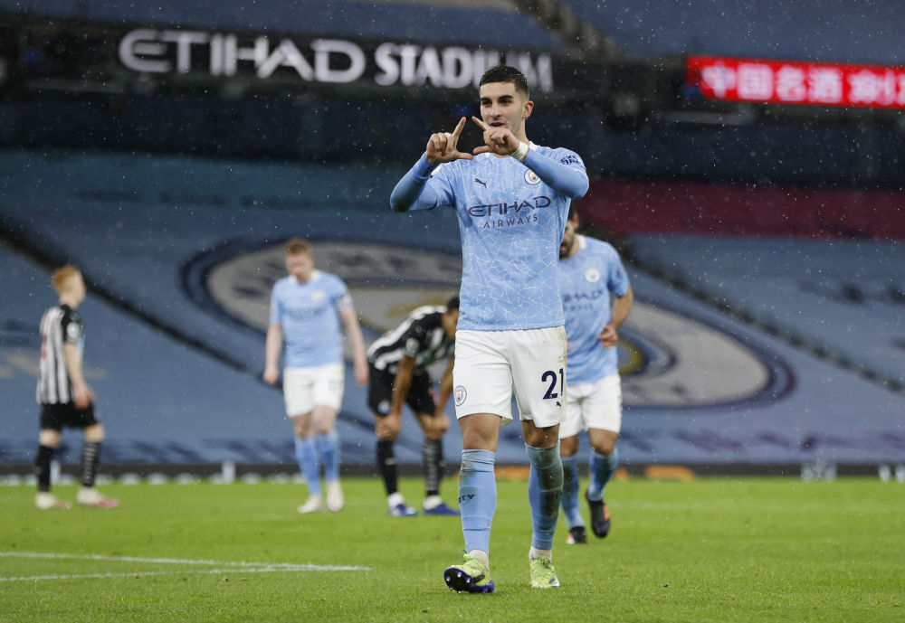 12月26日,曼城队球员费兰·托雷斯在比赛中庆祝进球。