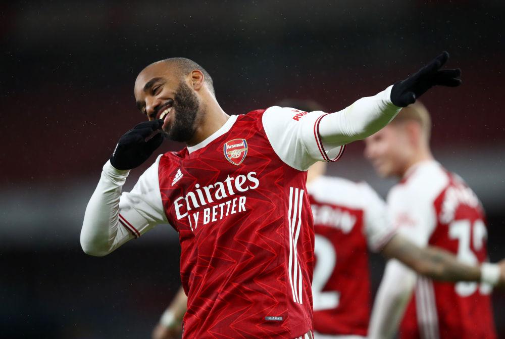 12月26日,阿森纳队球员拉卡泽特进球后庆祝。