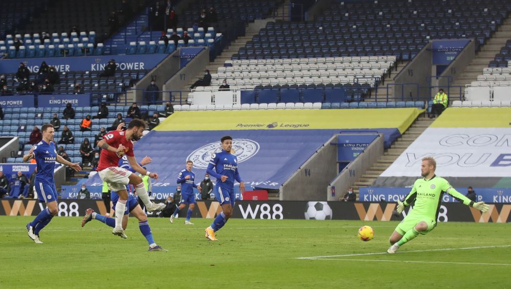 本轮另一场焦点战中,客场作战的曼联在第23分钟由拉什福德首开记录。8分钟后巴恩斯禁区外劲射帮助莱斯特城扳平比分。曼联中场核心布·费尔南德斯在第79分钟接卡瓦尼直塞冷静低射,帮助“红魔”再度领先。莱斯特城6分钟后再次扳平,英格兰前锋瓦尔迪的射门打在图安泽贝身上折射入网。两队最终2:2握手言和。