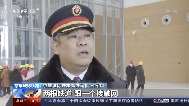 在京雄城际铁路联调联试工作中,韩军甲驾驶着高铁列车,往返与北京和雄安之间,对线路、地面设备、信号系统以及接触网状态,进行了数百次测试和检验。韩军甲说,在京雄城际铁路正式开通后,他还将继续驾驶复兴号,为雄安建设作贡献。