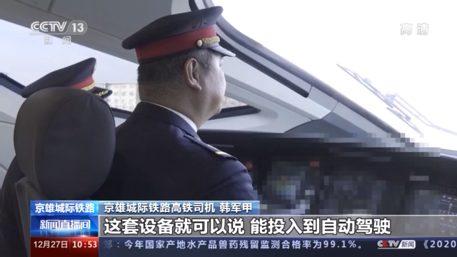 京雄城际铁路高铁司机 韩军甲:因为这个智能的动车组和现在的复兴号, 它是复兴号的升级版,它等于加了一套设备,这套设备可以说能投入到自动驾驶,更加优化、更加先进、更加科技感,但是需要我们人为地去盯控,因为还是为了确保安全。
