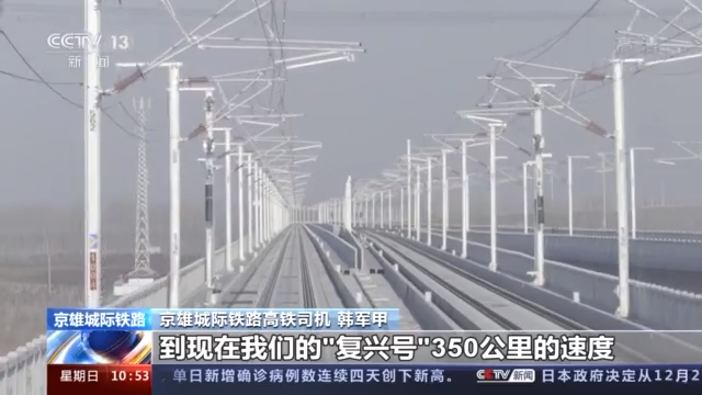 下午2点56分,韩军甲驾驶着复兴号,从雄安站准时出发,开往北京西站。