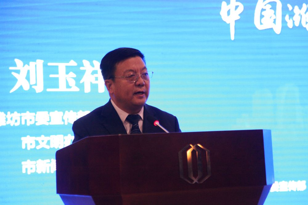 图为潍坊市委宣传部常务副部长、市文明办主任、市新闻办主任刘玉祥致辞。