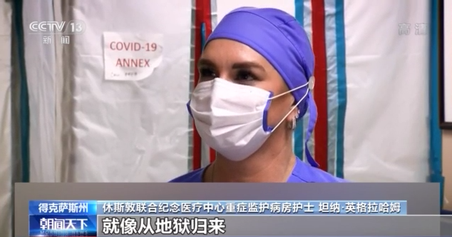 休斯敦联合纪念医疗中心重症监护病房护士 坦纳·英格拉哈姆:就像地狱一样,然后又回了一次地狱,就像我们不存在一样。你要知道,我们还在这里照顾病人,我自己、我的孩子和我妈妈,他们也有被感染的风险,我感觉我们被遗忘了,真的。