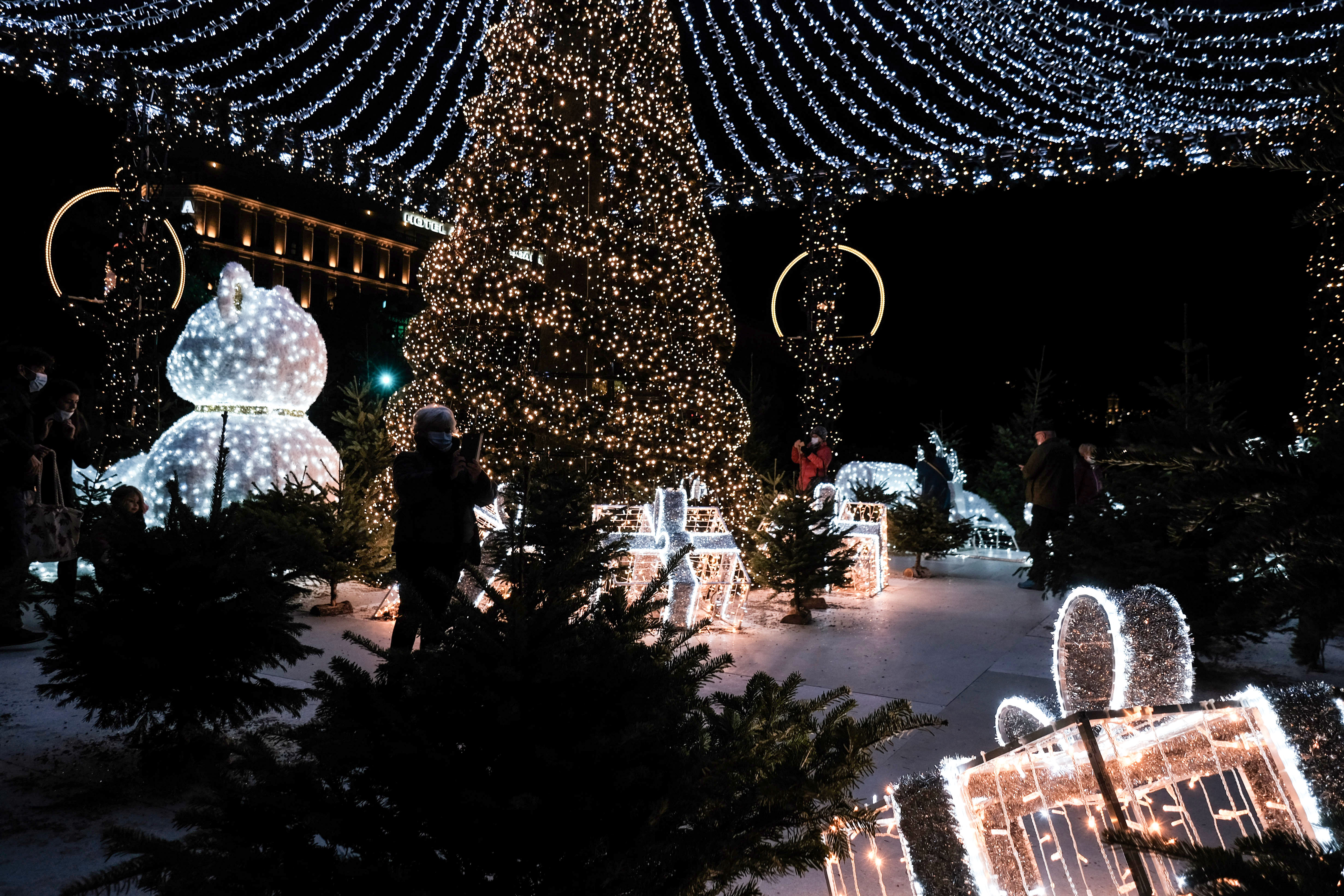 受新冠疫情影响,今年圣诞季异于往年,尽管法国各大城市街道依旧灯光璀璨,一派节日气象,但疫情阴霾笼罩下民众正常生活受到干扰,人们在不安中祈祷健康平安。
