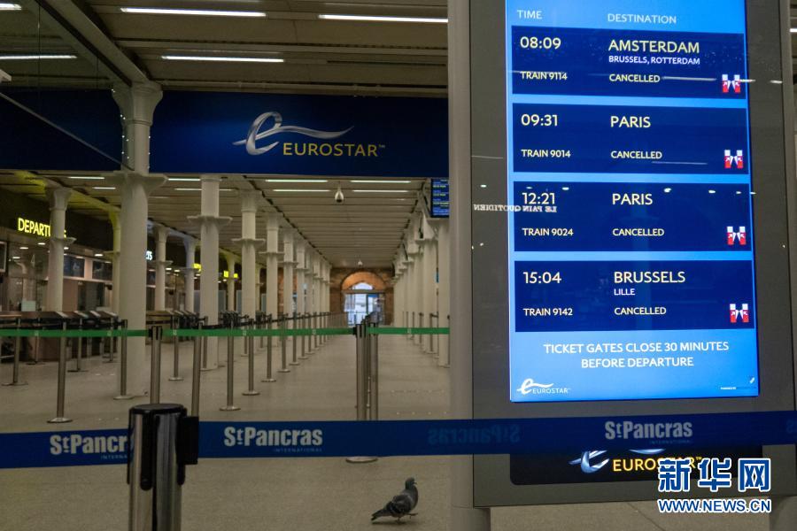 这是12月21日在英国伦敦圣潘克拉斯火车站拍摄的空荡荡的“欧洲之星”国际出发大厅。新华社发(蒂姆·爱尔兰摄)