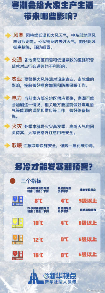 【#入冬最强寒潮来袭#,#未来几天到底有多冷# ?】中央气象台27日发布今冬首个寒潮黄色预警,全国大部地区将迎来今冬最寒冷天气。雨雪风+强降温双重“加持”,中东部将“被速冻”, 冷到“发紫”。北方部分地区温度降幅超过10℃,多地最低气温将跌破-5℃,0℃线更是南压至两广北部。棉裤穿得好,腿都抖不了,大家要做好保暖哦!