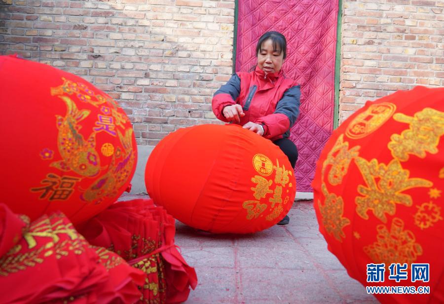 12月27日,河北省内丘县东马庄村妇女在村里一家灯笼加工厂加工灯笼。