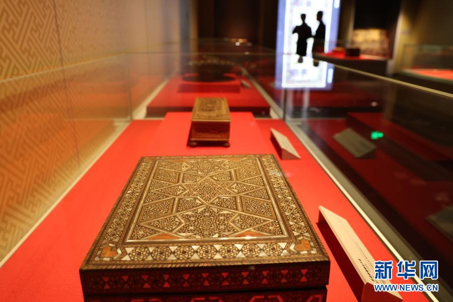 12月27日,观众在展厅内欣赏巴勒斯坦“铜嵌银花盘”。