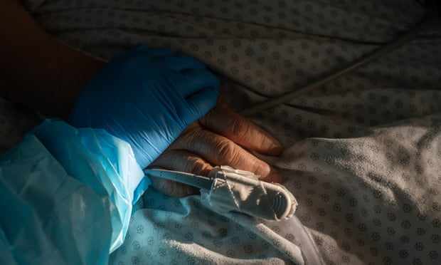 △得克萨斯州休斯敦一家医院的重症监护室内的新冠患者(图片来源:《卫报》)